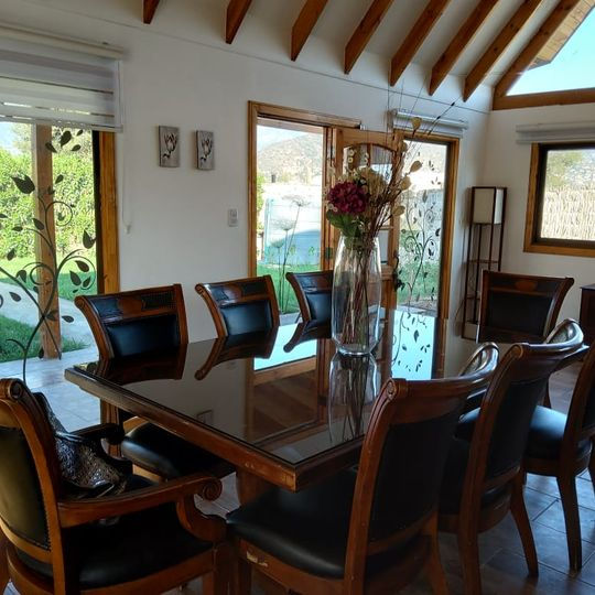 Se vende Preciosa casa para vivir o como segunda vivienda en un sector privilegiado de Olmué ,lejos del ruido ,con un entorno natural maravilloso ,una vista inmejorable al cerro la campana ,a 5 minutos del centro y del festival del huaso ,centros médicos ,colegios, en un lugar con acceso controlado (condominio). Cuenta con quincho ,piscina 4x9, bodega que se puede convertir en una confortable habitación, 4 dormitorios, 3 baños 2 comedores , living, gran antejardín y áreas verdes. El terreno es de 1000 metros cuadrados y la casa es de 180 metros cuadrados, pozo propio ,agua potable ,luz ,sistema de riego y 4 estacionamientos.